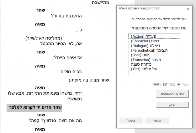 מלכתחילה, 'דיאלוג' נולדה על מנת לתת מענה לכתיבת תסריט בפורמט עברי. בעולם יש מספר רב של תכנות תסריט, רובן לא מאפשרות כלל כתיבה בעברית ובודאי לא סידור פורמט עברי תקני ומוכר. כך למשל Final Draft שהיא תכנה אמריקאית המהווה את הסטנדרט של התעשייה בארצות הברית ובחלק מאירופה, כלל לא מזהה תווים עבריים. החל מגרסה 4…