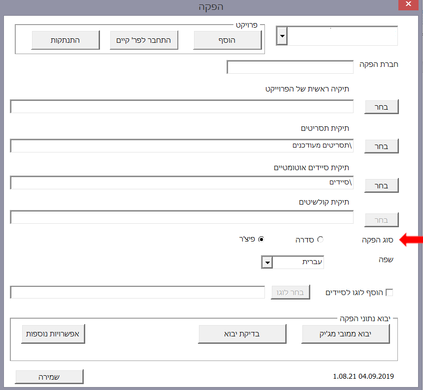 אם הפרויקט הוא סדרה אך בטעות הוגדר כפיצ'ר (יתכן שזה קרה בעת עדכון פרטי הפרויקט מבלי משים) יש להיכנס לסרגל 'הפקה' > 'פרויקט'. בחלונית הפרויקט לעדכן את הגדרת 'סוג הפקה' לסדרה: